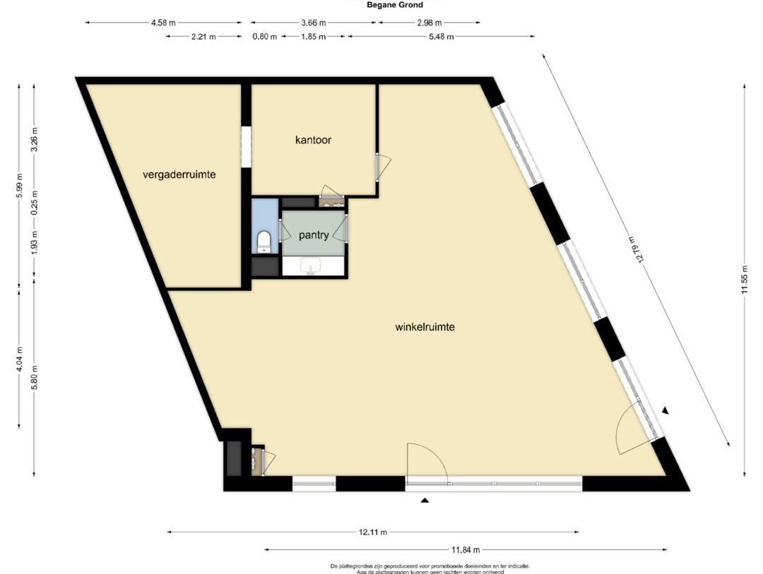 Via de entree kom je in een royale, open ruimte. Verder zijn er een open pantry, twee aparte kantoor-/praktijkruimtes en een toilet aanwezig.