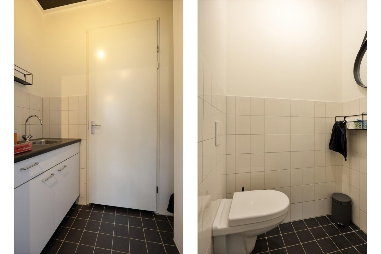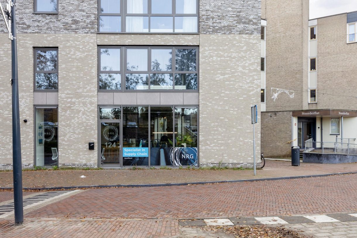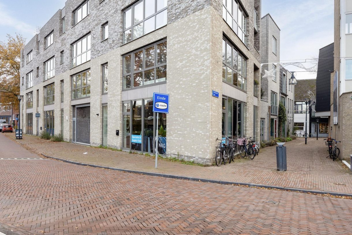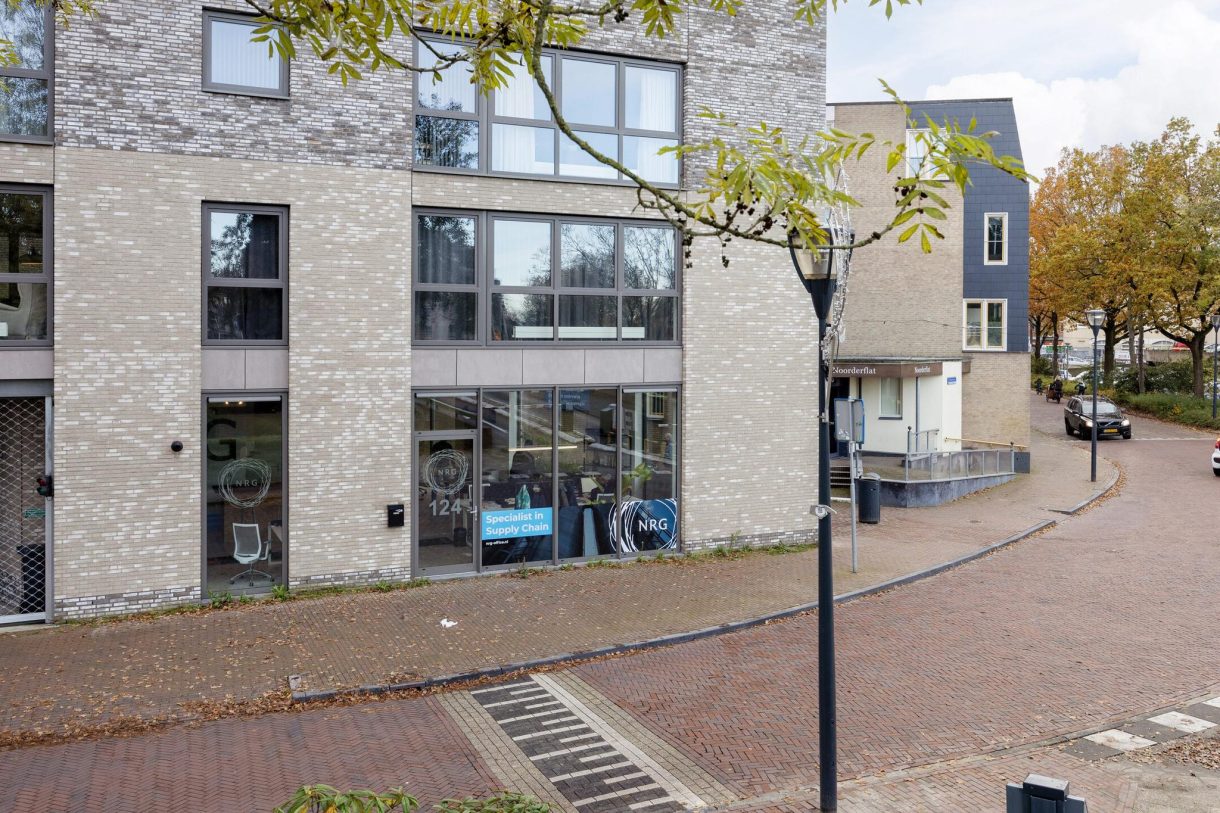 De ruimte is onderdeel van een onder architectuur gebouwd kleinschalig appartementencomplex met een viertal winkels/bedrijfsruimten in de plint,