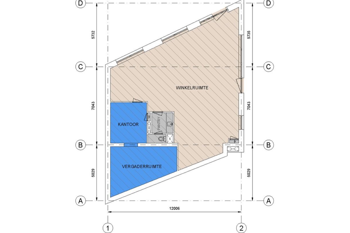 een opvallend en prominent gelegen Winkel/Showroom/Praktijkruimte.