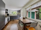 In de keuken geeft een achterdeur toegang tot de oprit en de doorgang naar de garage/berging.