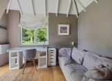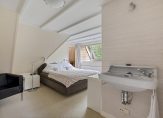 Middels een open bordestrap met veel daglicht door de kapel met glas-in-lood vensters, komt u op de verdieping met twee speelse maar ook praktische slaapkamers; een ouderslaapkamer met wastafel, walk-in-closet en een loggia;