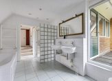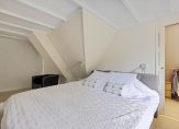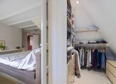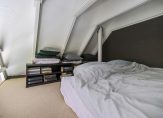 een ruime slaapkamer met vaste kasten, een wastafel en veel daglicht; centraal ligt de ruime badkamer met ligbad, douchehoek, twee wastafels en toegang tot de loggia; op de overloop is een inbouwkast en een toilet en de trap naar de 2e verdieping.