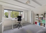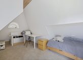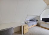 De vaste trap leidt naar de zolder met een hal en dakkapel en 2 slaap/hobbykamers met bergruimte achter de knieschotten; de kamers zijn goede kinderslaapkamers en hebben een geïsoleerde en beschoten kap.