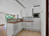 Centraal ligt een corridor met toegang tot de gastentoilet, garderobe, trap naar het souterrain en aan het eind de praktische keuken met een lichte en strakke inrichting met kook- en spoeleiland en rondom veel kastruimte en alle gangbare apparatuur waaronder magnetron, stoomoven, vaatwasser, koel- en vrieskast.