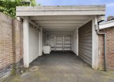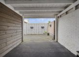Aan de achterzijde van de garage is een houten overkapping geplaatst, waar men heerlijk beschut kan zitten.