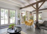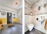 Entree via een ruime hal met modern toilet en doorgang naar de woonkamer en keuken. De sfeervolle living is voorzien van grote raampartijen, een houtkachel en openslaande deuren naar de tuin. De gedeeltelijke vloerverwarming in de woonkamer, keuken, kantoor en badkamer zorgt voor aangename warmte. De landelijke keuken is uitgerust met inbouwapparatuur en biedt zicht op de tuin. Aansluitend bevindt zich een bijkeuken met witgoedaansluitingen. De multifunctionele kamer op de begane grond is geschikt als kantoor, speelruimte of extra slaapkamer.