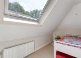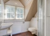 De overloop geeft toegang tot drie comfortabele slaapkamers. De hoofd slaapkamer beschikt over een eigen badkamer met ligbad, inloopdouche, dubbele wastafel en toilet. De tweede badkamer heeft een douche, wastafel en extra toilet. Beide badkamers zijn modern afgewerkt en voorzien van vloerverwarming.