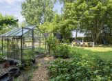 De beschutte tuin rondom de woning is sfeervol en groen aangelegd. Je vind er onder andere meerdere fruitbomen, een kas, een moestuin en bloementuin. Er zijn meerdere zitplekken en een buitenkeuken. Hier geniet je het hele jaar door van privacy, rust en natuur. Op het erf staan twee houten schuren en een ruime overkapping, ideaal voor opslag, hobbyruimte of het stallen van een boot, klassieke auto en dergelijken. De ruime oprit biedt volop parkeergelegenheid op eigen terrein.