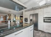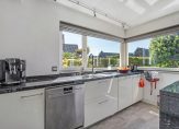 De half-open keuken heeft zicht op de straat en is praktisch en functioneel ingedeeld met een 6-pits kookeiland met veel kastruimte; de inbouwapparatuur is volledig vervangen.