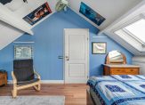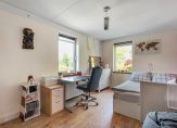 In de zijvleugel onder het zadeldak bevinden zich nog een hobbykamer en een slaapkamer met kleedruimte en veel bergruimte achter de knieschotten; alle ruimten voorzien van Velux kantelramen.