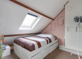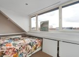 2e verdieping: De overloop op de tweede etage geeft toegang tot twee slaapkamers, de CV ketel en een opbergkast. Verder zijn de wasmachine en droger aansluitingen op deze etage te vinden. Deze etage is verrassend ruim door de grote dakkapel aan de achterzijde van de woning.