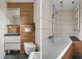 De badkamer, uit 2014, bevindt zich aan de voorzijde en is modern ingericht met een douche/badcombinatie, een fraaie natuurstenen wastafel en een 2e toilet. Deze ruimte is voorzien van vloerverwarming.