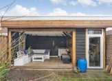 De tuin: De woning beschikt over een verrassend (16 meter) diepe tuin mét achterom. De tuin is voorzien van een vrijstaande stenen berging, vrijstaande houten overkapping met aangrenzende houten berging. De tuin is gelegen op het zuid westen.