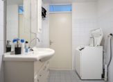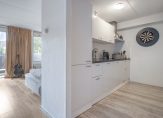 De slaapkamer bevindt zich aan de rechterkant, via de raampartijen heb je uitzicht op een rustige weg. Hiernaast is de nette badkamer aanwezig, deze beschikt over een douche, wastafel en toilet. Als je verder de hal doorloopt bereik je de lichte woonkamer met half open keuken. De keuken is voorzien van koel-vries combinatie, inductiekookplaat, vaatwasser en biedt voldoende ruimte. Ook is er een voorraadkast aanwezig waar zich de cv-ketel bevindt. De woonkamer heeft grote raampartijen en biedt toegang tot de tuin. Parkeren is openbaar en kan aan de achterzijde van het complex.