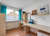 overloop; 2 grote slaapkamers met vast kaste; kleine slaap/studeerkamer, badkamer met douchecabine, wastafelmeubel en 2e toilet.