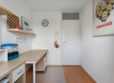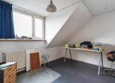 Vast trap naar zolder met twee slaapkamers met dakkapellen en veel bergruimte; stookruimte voor c.v. en ruimte voor wasmachine en droger; zolderberging.