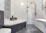 Op de eerste verdieping bevinden zich drie slaapkamers van goed formaat en een nette badkamer met douche, bad, wastafel en tweede toilet. De zolder is bereikbaar via een vlizotrap en biedt extra bergruimte.