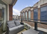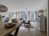 De woning beschikt over een royale living van ca. 50 m² met openslaande deuren naar het inpandige balkon, gelegen op het zuiden en met fraai uitzicht naar de gevels en verlichte winkels.