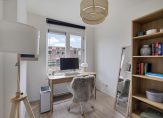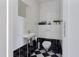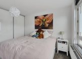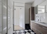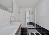 De badkamer is ruim en ingericht met douche, ligbad en dubbele wastafel en ligt naast de twee slaapkamers. Centraal in het appartement ligt een inpandige bijkeuken/berging met ruimte voor de wasmachine en de mechanische ventilatie.