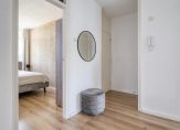 Entree/hal met meterkast en separaat toilet. De lichte woonkamer heeft een fijne indeling en biedt toegang tot beide balkons. De moderne keuken is uitgerust met diverse inbouwapparatuur en biedt voldoende werk- en bergruimte.