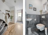 Binnenkomst via de hal met meterkast, moderne toiletruimte en trapopgang. De lichte woonkamer is tuingericht en heeft een prettig uitzicht op de achtertuin met overkapping. De grote raampartijen zorgen voor veel daglicht en een fijne sfeer. Aan de voorzijde bevindt zich de moderne keuken, uitgerust met een robuust betonnen aanrechtblad en hoogwaardige inbouwapparatuur zoals een groot gasfornuis met grillplaat, koel-vriescombinatie, diverse ovens en een Quooker.