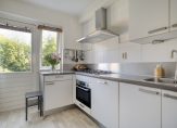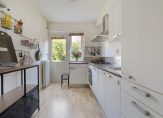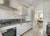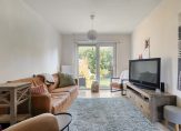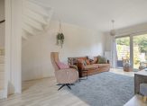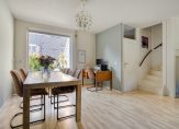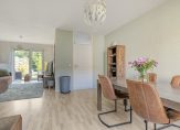 Je komt binnen via de hal met toegang tot het toilet en de meterkast. De lichte woonkamer is tuingericht en biedt veel ruimte voor zowel een comfortabele zithoek als een royale eethoek. Grote raampartijen zorgen voor prettig daglicht en een fijne verbinding met de achtertuin. Aan de achterzijde bevindt zich de keuken, die praktisch is ingericht en voorzien is van diverse inbouwapparatuur.
